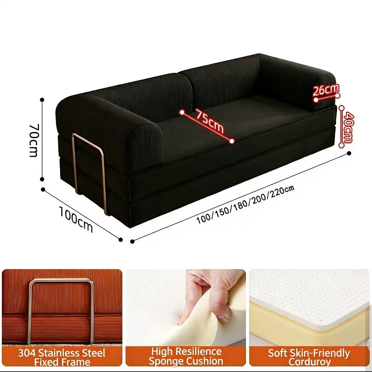 Amodern space-saving sofa bed designed for small apartments. Vacuum-packed for easy delivery, featuring soft foam support, a foldable structure, and a comfortable lounge design perfect for relaxing or sleeping.