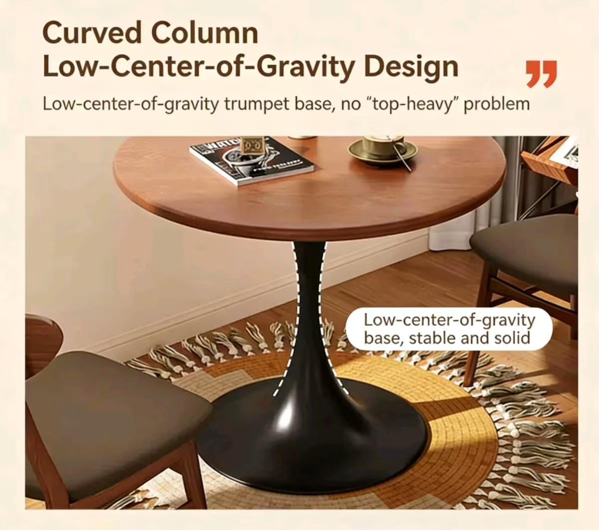 Add a touch of elegance to your home with the TulipCraft Solid Wood Round Dining Table. Perfect for small spaces like apartments or balconies, this beautifully crafted table offers a compact yet stylish solution for dining or as a reception table.